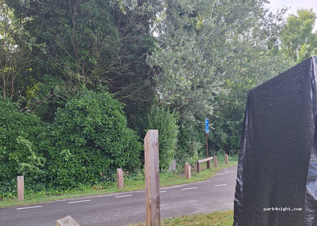 Parking gratuit sans services, juste un robinet d'eau potable sur une extrémité du parking. Nous avons passé une nuit à 2 fourgons aménagés, pas de bruit mais un curieux va et vient de véhicules, lumières éteintes et dont les occupants se déplacent à pieds sur la piste cyclable... sans nous importuner.