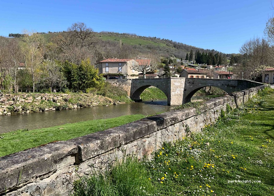 Vert good parking, with huge green grass space, some big trees that offer goid shade. small river. pretty quiet. on Wednesday (today) there is a very nice market in the villageLe Mas-d'azil , and now here there are few other vans, maybe they came for the market like me. this place have been suggested me also from the old people living in the village. No services
