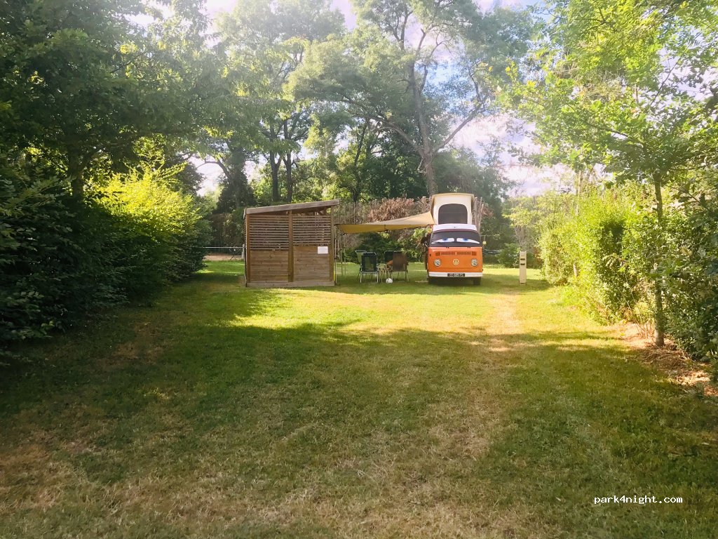 super emplacement avec coin kitchenette couvert...atypique et très agréable...emplacement calme ainsi que le camping...accueil chaleureux et soirée animations parfaitement adaptées aux enfants...sanitaire très propre... génial pour pécher