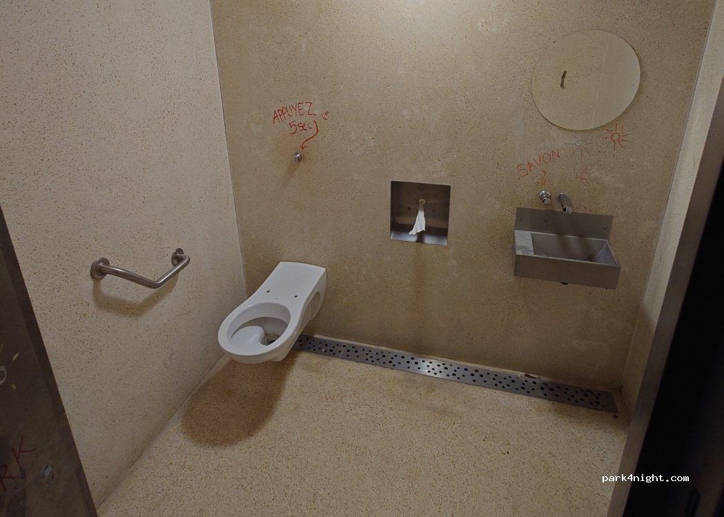 Man muss vorsichtig hier sein . Wir waren abends einzige au dem Parkplatz. Gegen 23 Uhr haben festgestellt, dass uns gegenüber ein Auto mit eingeschaltetem Fernlicht stand und uns ausgeleuchtet. Wir haben ca 30-40 Minuten diese Situation beobachtet. Dann haben doch aus Sicherheitsgründen den Parkplatz verlassen. Als Positiv gibt es WC, nachts offen. Parkplatz ist groß