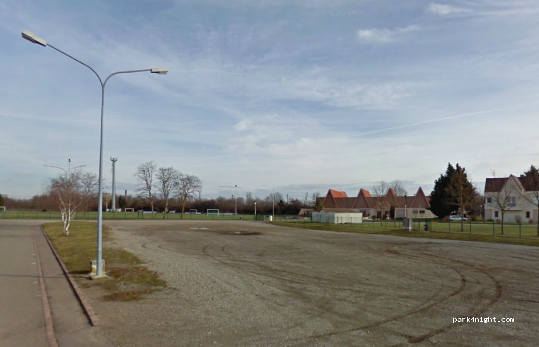 Grand parking en gravier près du complexe sportif et du stade, endroit idéal pour le jogging matinal, dans la zone de résidence. Ligne de train à 100, attendez-vous à du bruit le soir et le matin. Air de jeux pour enfants et terrain de foot a disposition juste à côté.