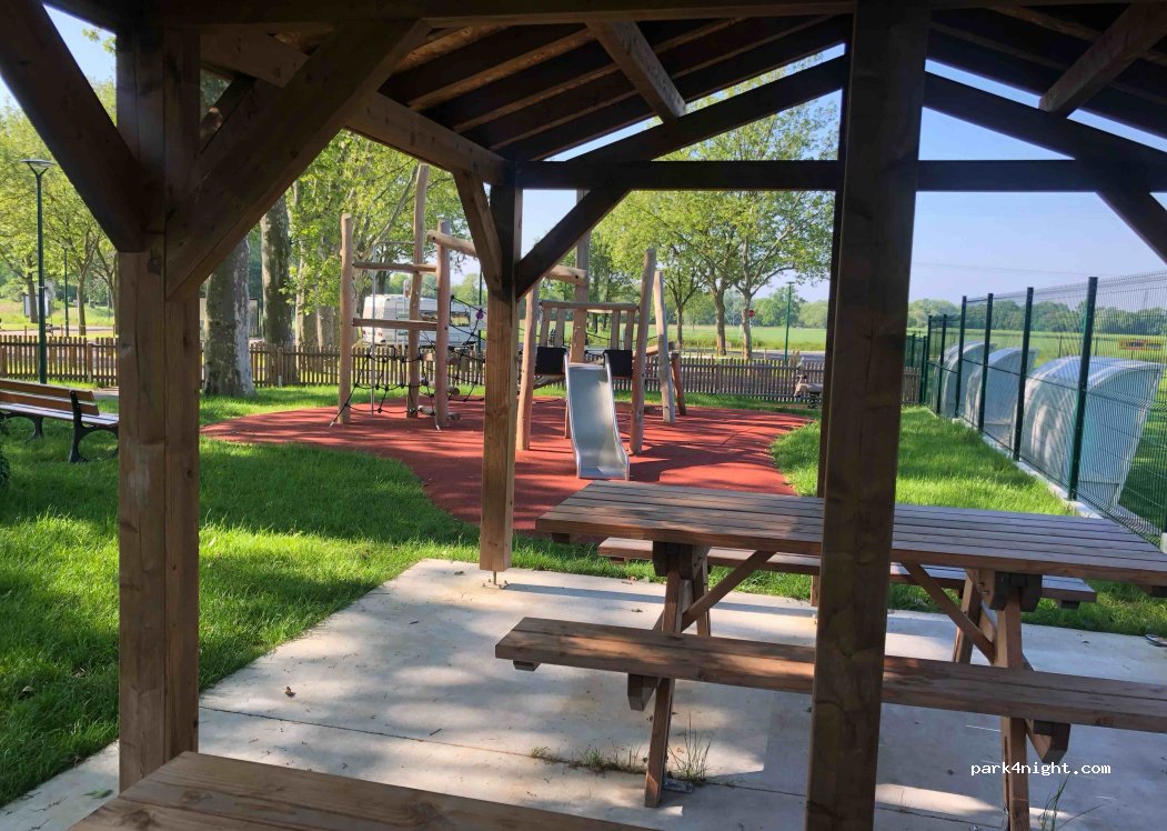Vers la fin de la journée, attendez que les derniers joueurs de tennis finissent leurs parties et dirigez vous au fond à gauche devant le parking du terrain de boules, vous y passerez une nuit au calme.