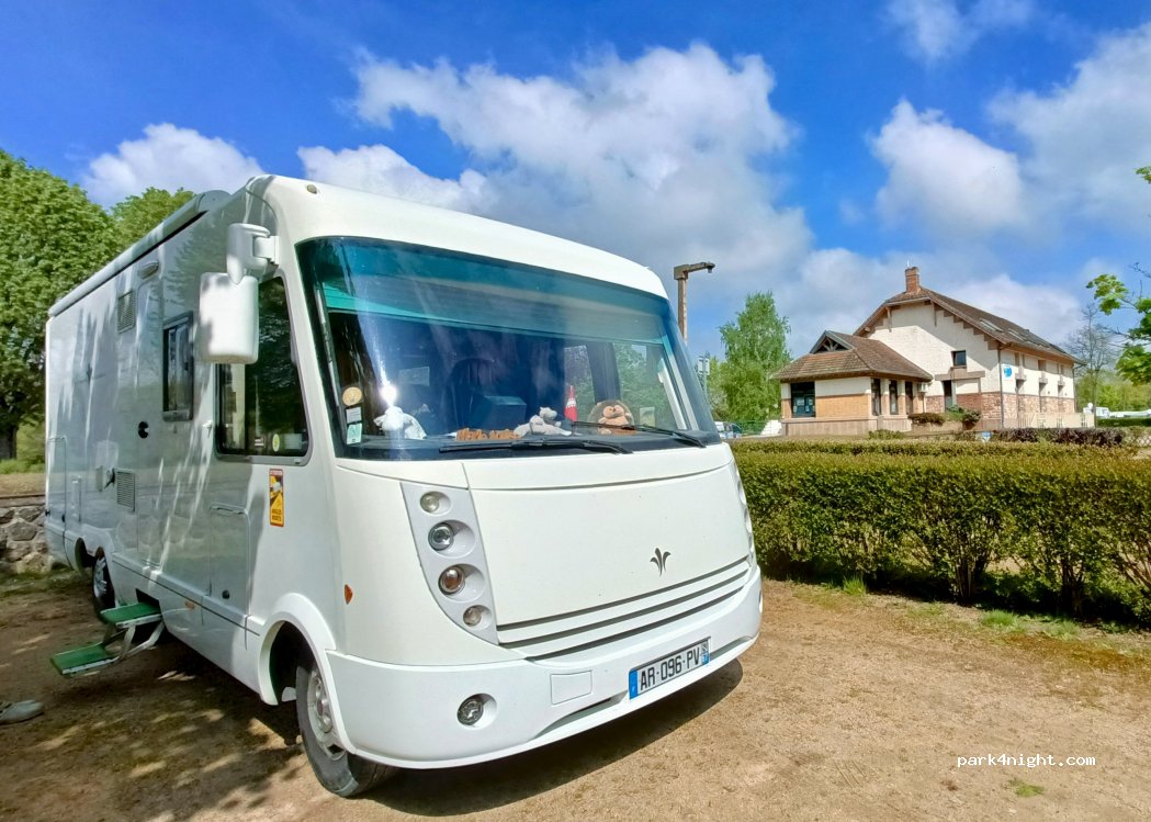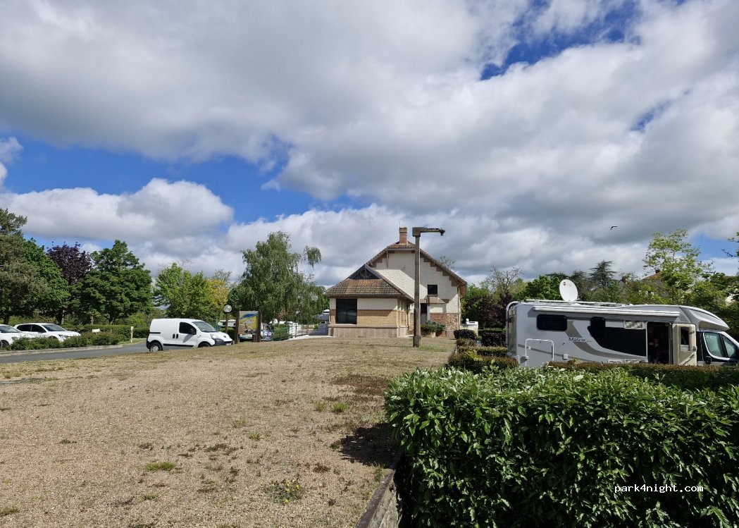 Nous étions seul de passage en ce mois triste de novembre. Bon accueil, très jolie endroit avec une ancienne gare transformé en O T. Un chef d'oeuvre d'architecture, un petit étang plus bas à voir, avec des pêcheurs. L'aire jouxte le camping près d'une route peu passante. Avons passé une bonne nuit.
