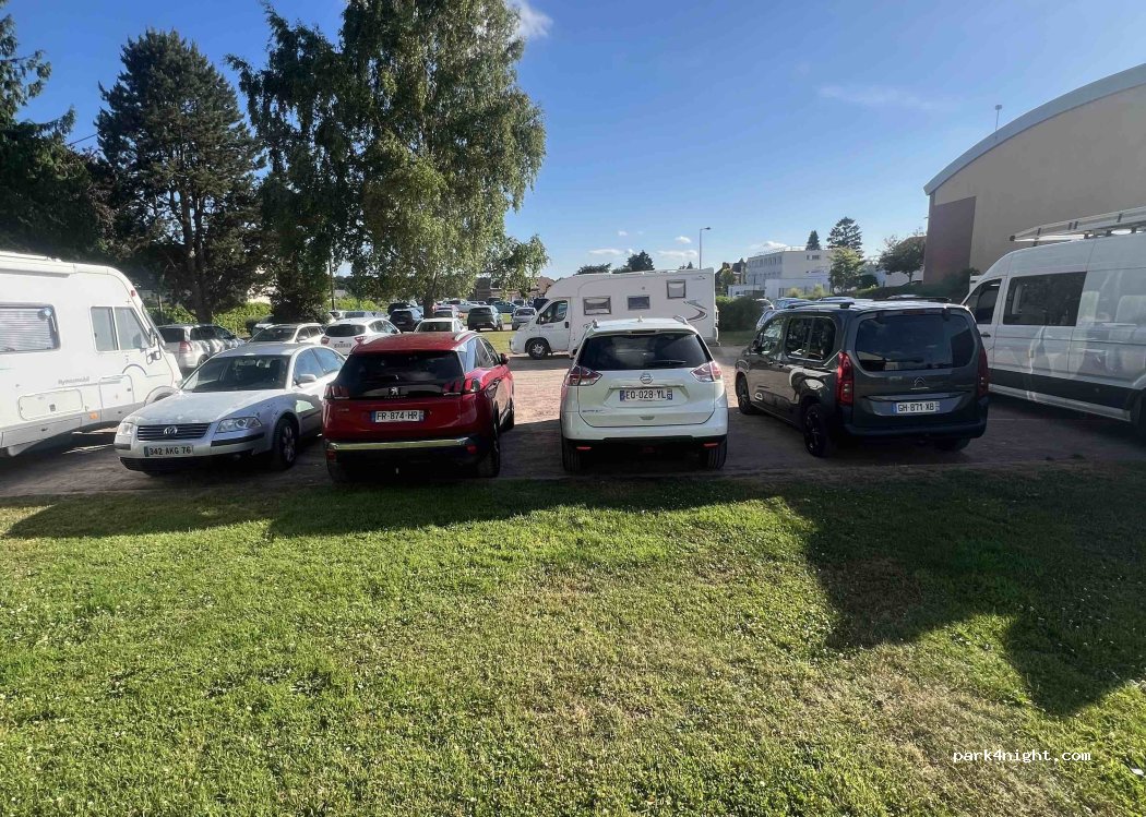 Stayed one night on the way back to Calais. Plenty of parking spaces, once the community & sports hall closed and lights switched off it was very quiet. The bins were emptied at 5am but that is pretty standard and didn’t disturb us unnecessarily. Lovely historical market town worth visiting with plenty of independent shops, mini supermarket and restaurants.