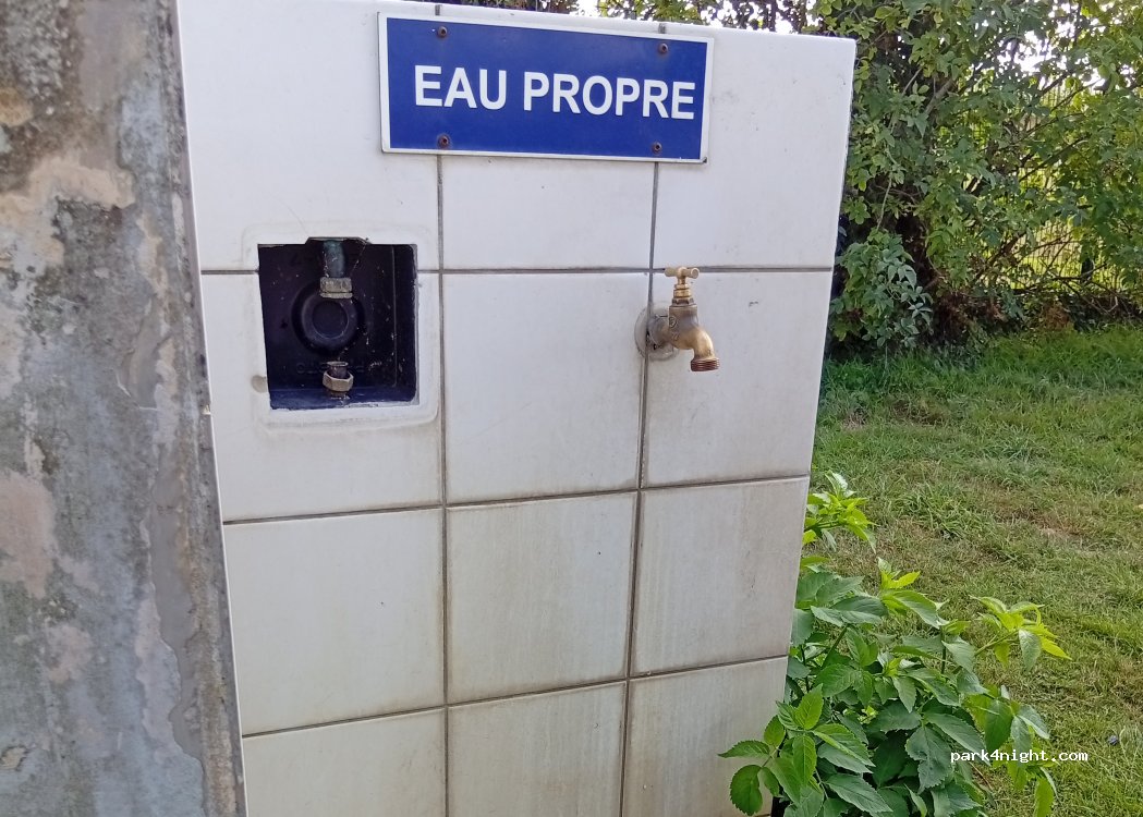 Borne bien pratique, services gratuits : eau et vidanges. Parking un peu plus loin mais uniquement de jour.