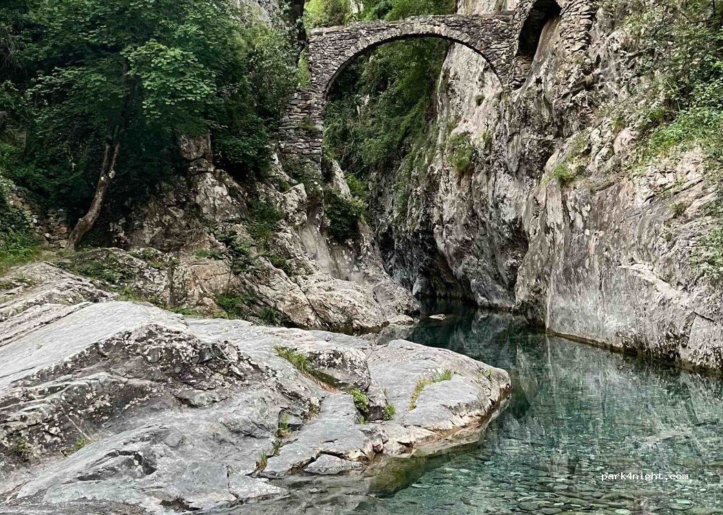 Der Parkplatz ist wirklich klein. Wenn niemand sonst parkt, passen ein oder zwei Wohnmobile hin. Wenden aber nicht möglich, wir waren alleine und sind rückwärts drauf gefahren. Die Gumpen am Fluss mit der alten Brücke sind sehenswert.
