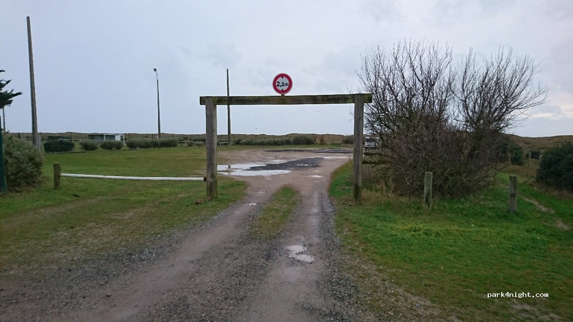 Les dunes de la martinière - Stade de football. La Barbâtre.Parking de la plage limité à 2,20 m, plat, calme. Le terrain de foot est privé et est transformé en un parc d'obstacles acrobatiques (payant). 3 places CC possibles avant les barrières.