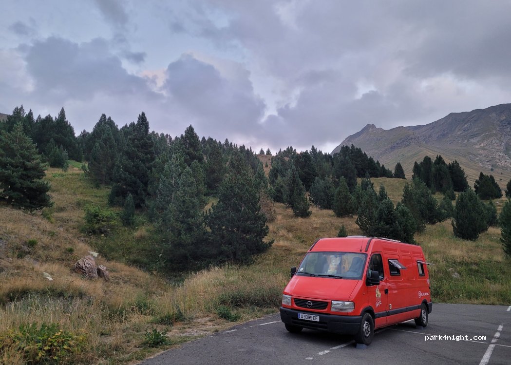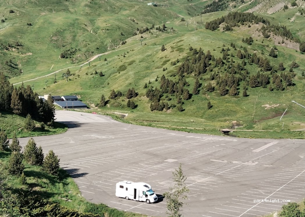 Parfait pour échapper à la canicule. Les places les plus plates sont en bordure du grand parking. Poubelle verte devant le bâtiment de l'école de ski, autres poubelles à côté d'Ampriu 50' derrière une clôture en bois. Peu de CC la nuit. surtout des Espagnols qui viennent pour la fraîcheur et le calme. Beau ciel étoilé, pas de pollution lumineuse.