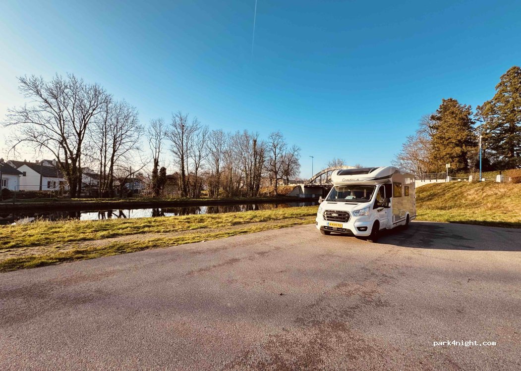 Parking gratuit à côté du canal de l'Est, agréable malgré le bruit de la route en journée, assez calme la nuit avec le couvre-feu, de belles promenades à faire, de nombreux commerces à proximité dans le centre-ville. Merci à la municipalité pour votre accueil camping-car.