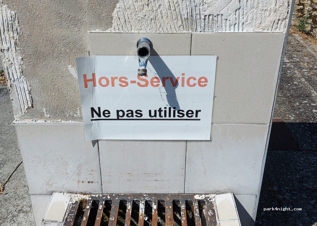 ici, tout est ’hors service’. Pas d’eau, pas de vidange eaux noires. Rien!