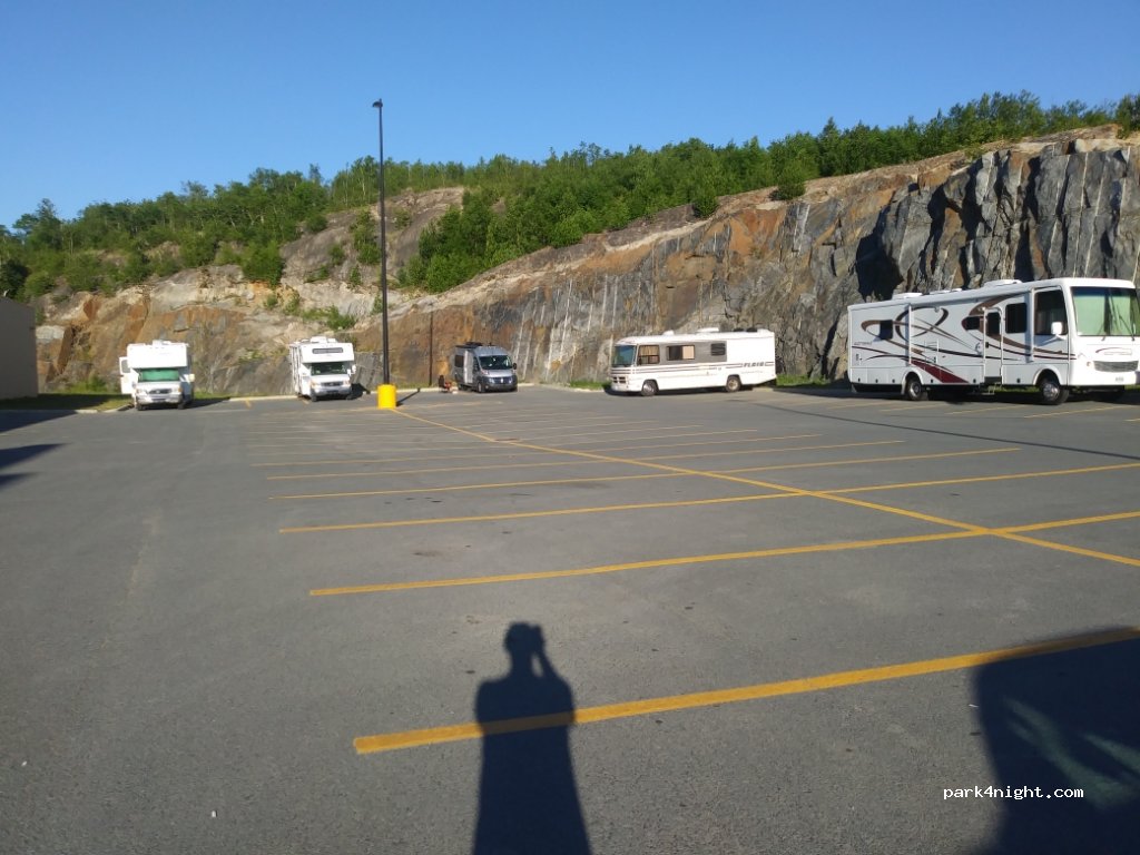 There are lots of over night parking signs but we were one of 7 other Rvs parked overnight. felt very safe with so many others around. Nice section of rock wall to park near with no truck traffic.