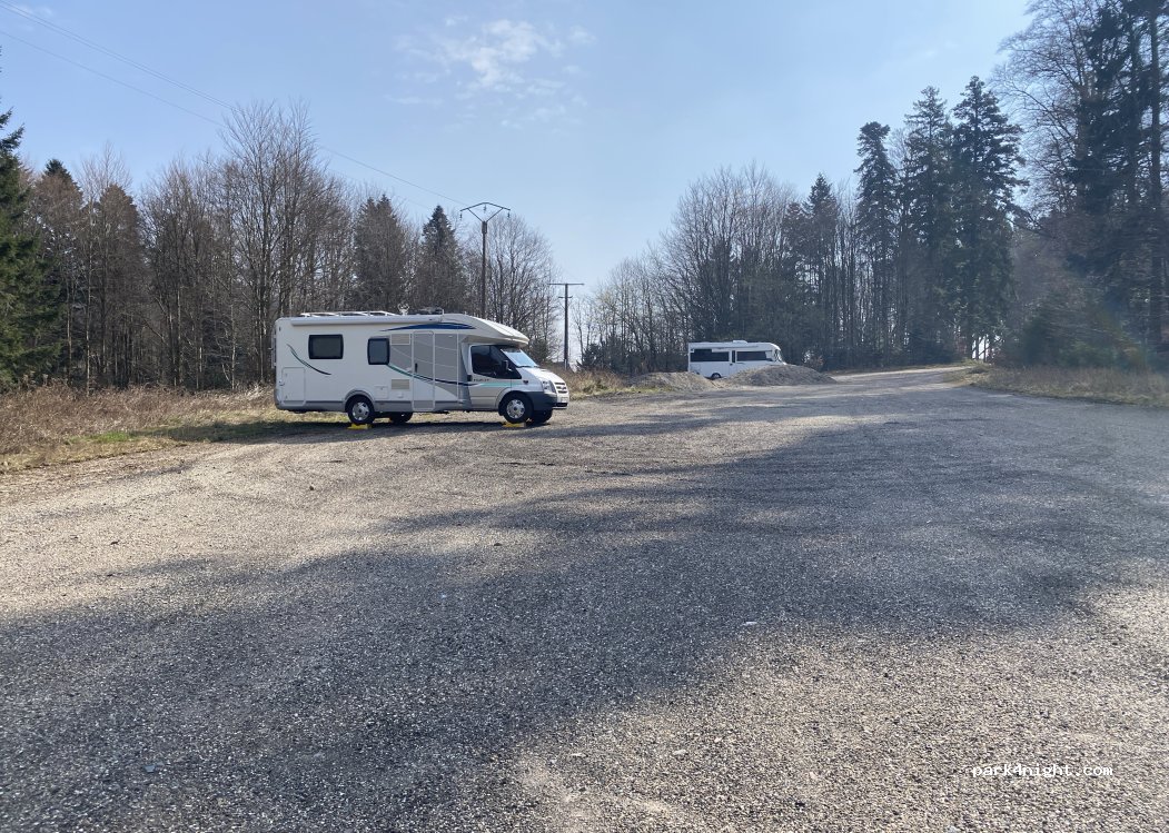 Grand parking très calme dans la forêt, nuit tranquille, parfait pour une nuit.