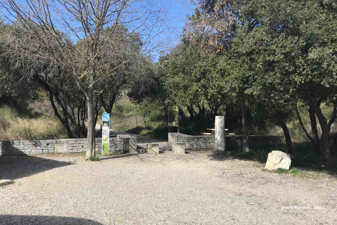 Parking pour la visite de l’abbaye de Saint-Roman.