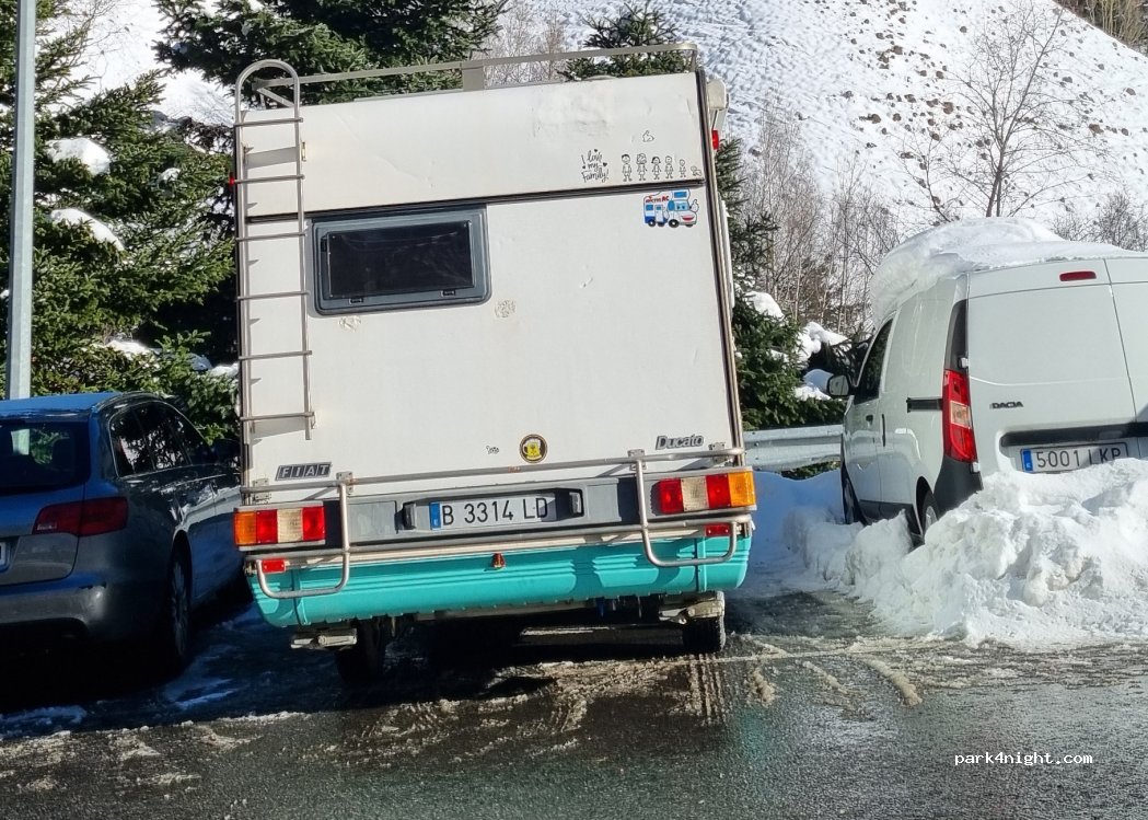 Noche de fin de semana muy tranquila con un par de furgos y Autos. Perfecto para esquiar.