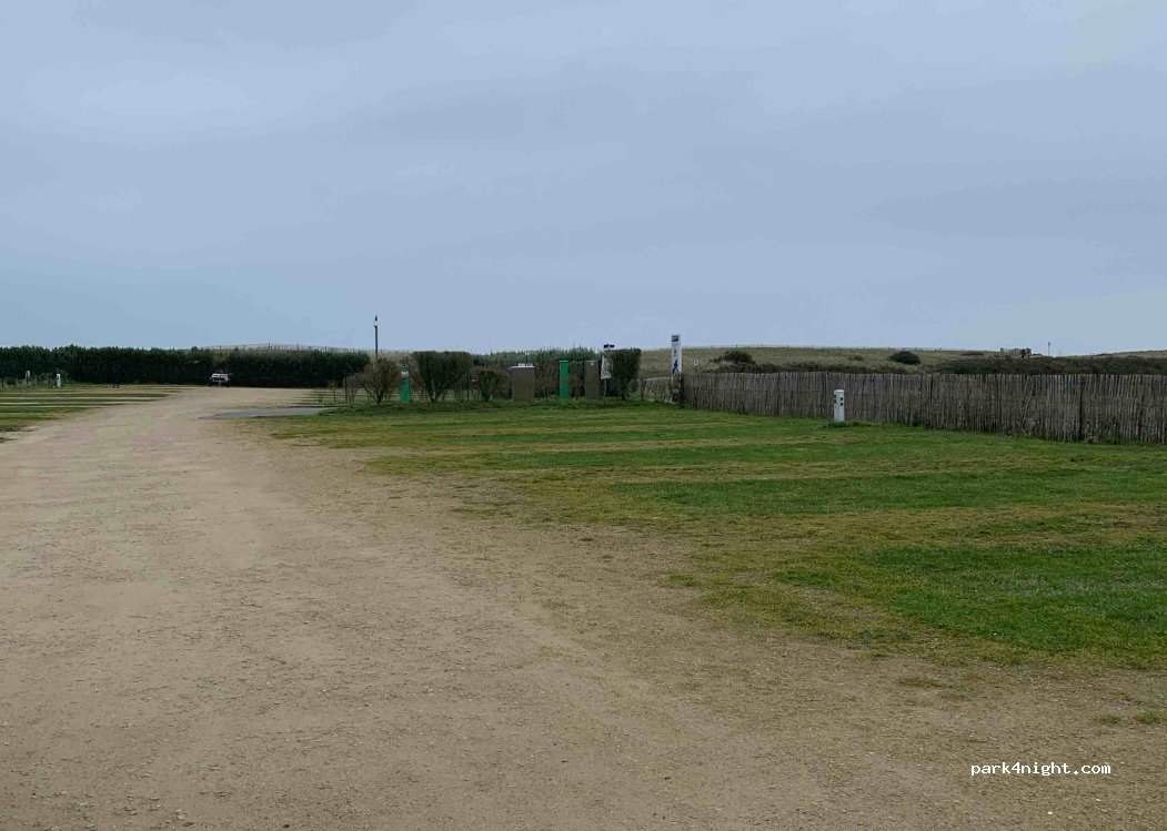 Devant sortir pour midi de l’aire à côté , un super plan pour la pause repas. Vue magnifique sur la plage des Amiets. Accès et manœuvres faciles même avec un gros gabarit (hors saison, car en été il doit avoir du monde de stationné). Par contre interdit de nuit mais certains ne respectent pas, ça finira par l’être aussi en journée dommage …