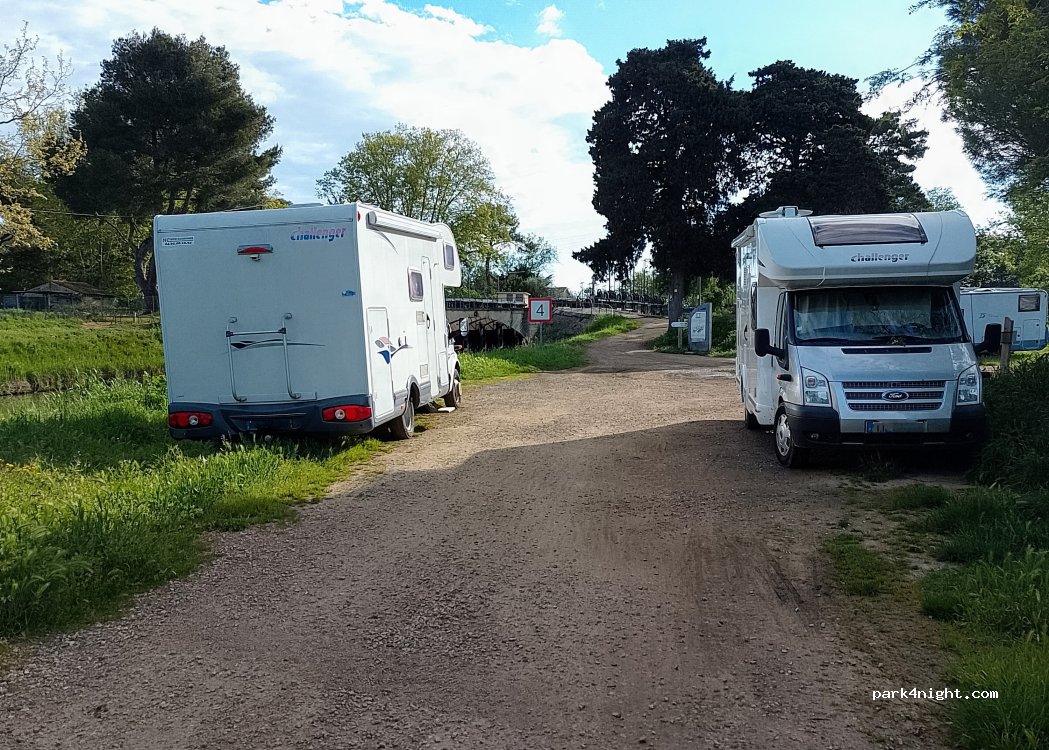 Tres joli spot ! sur les berges du canal du midi. Au calme malgré le passage de cyclistes et joggeurs la journee ou des plaisanciers sur l'eau. Mais calme la nuit. Possibilite d'y stationner a 3 ou 4 camping car / vans. Ne pas hesiter a avancer un peu dans le chemin a gauche en arrivant. Il y a 2 places le long du canal.