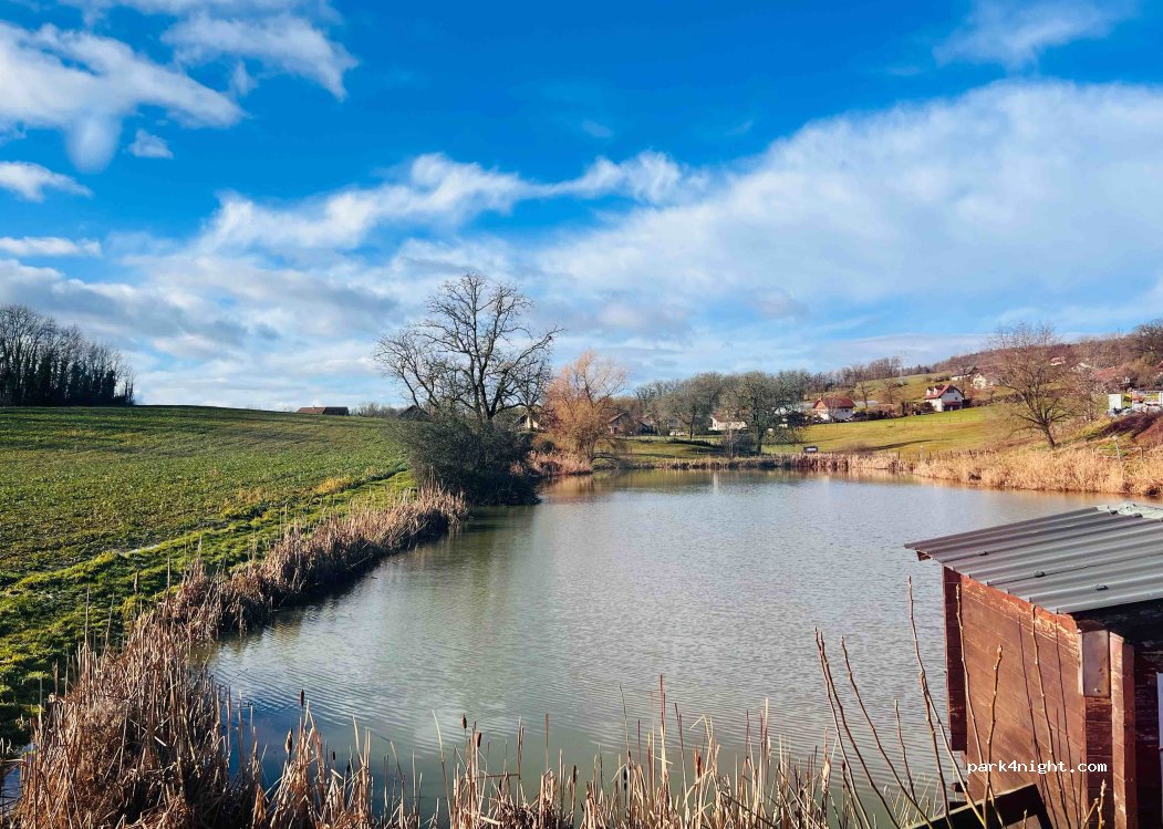 Nous y avons passé une excellente nuit au bord de l’étang, l’endroit est très calme, stabilisé et plat. Je recommande vivement cet endroit