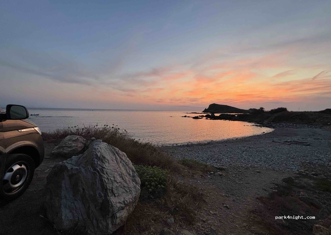 Endroit calme et en bord de mer, on y est resté 2 nuits, couché de soleil magnifique et à 5 min à pied du centre avec le port et les commerces. Quelques places possibles mais idéalement à 2 vans pas plus.