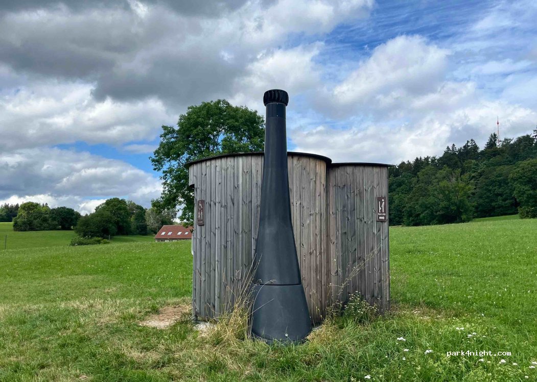 Ein Schotter Parkplatz, der für eine Nacht ausreichend ist. Die Toilette ist vom Prinzip wie eine Dixitoilette.