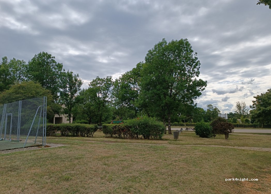 Rustige plek aan de rand van de tennisbanen en kinderspeelplaats, mogelijkheid tot een staanplaats voor hoge voertuigen, en enkele andere onder bomen, goede locatie voor een rustige nacht op een paar kilometer van Dijon.