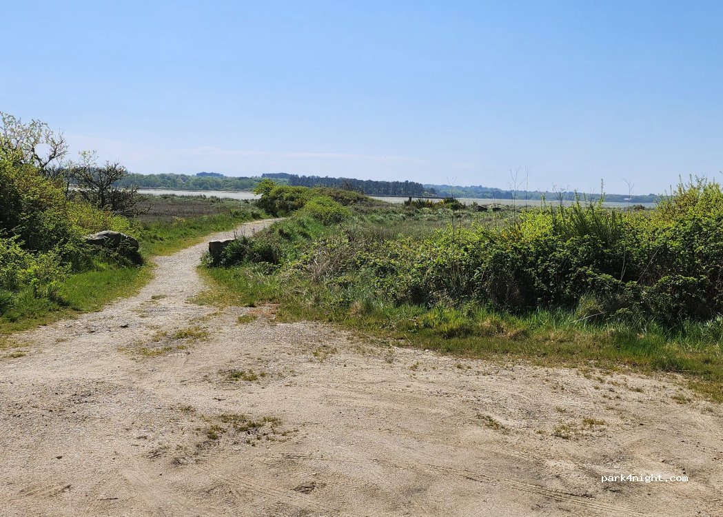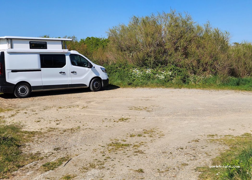 Super spot, possibilité d'être 3 vans mais peu d'intimité. Chemin avec pas mal de nids de poules et pas de croisement possible. limitation 2m et le bord de plage n'est plus accessible sauf a pied. Pas mal de passage (promeneurs, vélos,..).