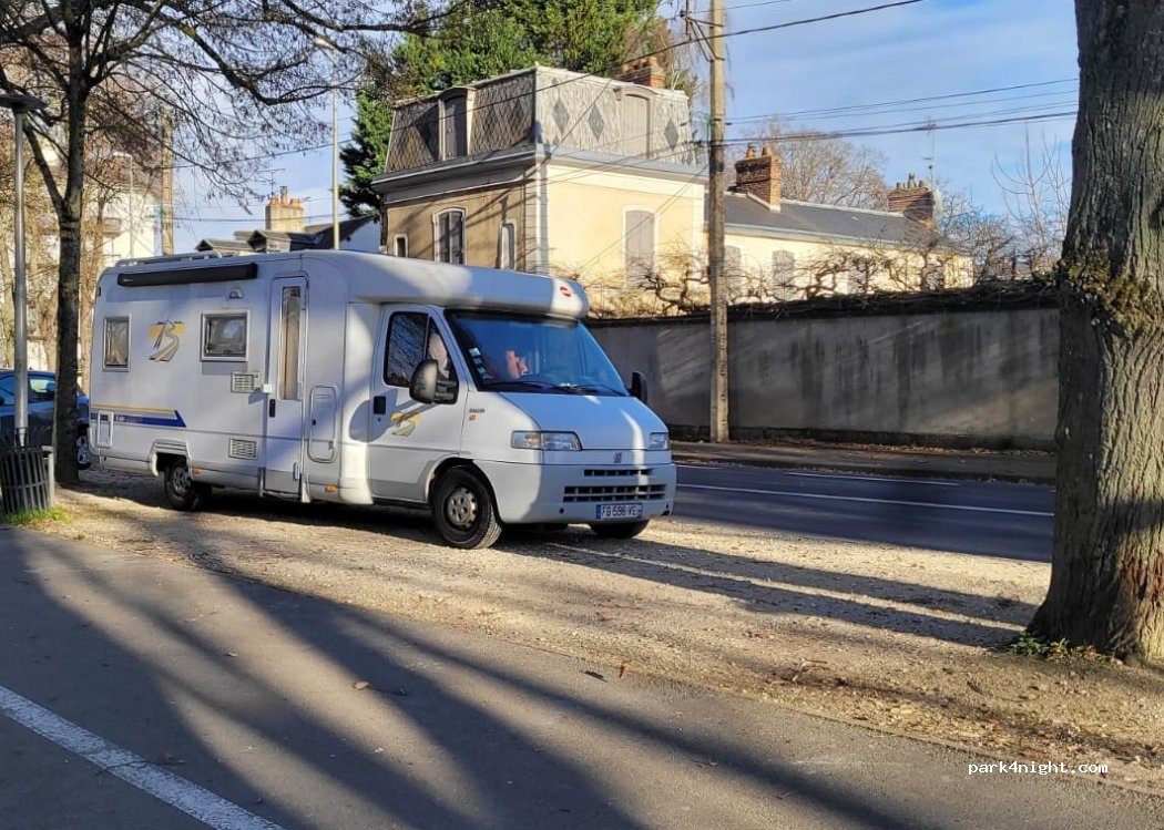 Great parking place for visiting Chartres. Steep walk up steps to cathedral, meander back through old town. Free on Sundays and holidays. Pay by card or PaybyPhone. Unsuitable for vans over 6 metres due to length of spaces and busy road.