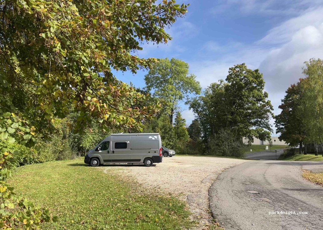 Vaste parking à côté d'un camping fermé d'octobre à mai.