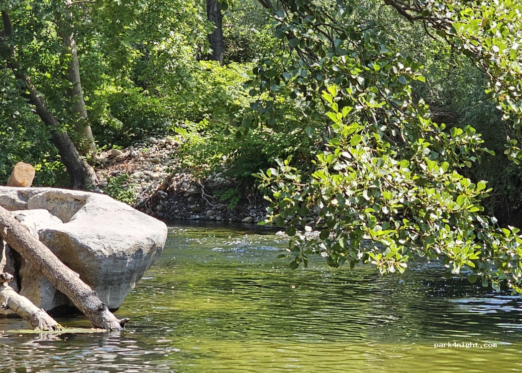 Impeccable ! Superbe accueil, emplacement ombragé et piscine sympa ! Dépôt de pain trop bon. L'accès à la rivière est juste là mais n'est pas très profonde à ce niveau.