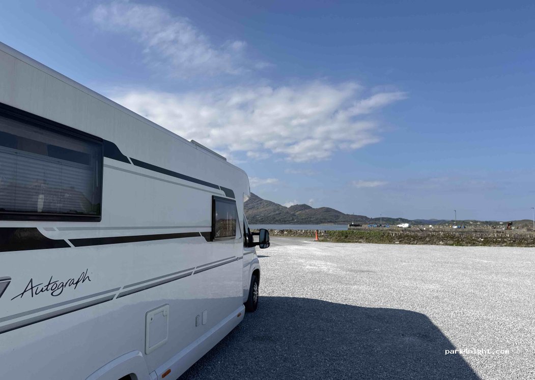 Grand Parking plat devant un pub et un petit port. Gratuit avec possibilité de manger, de boire et d’utiliser les WC du pub. Personnel très sympa, ambiance locale. À proximité, une magnifique propriété ouvre son parc arborisé avec des essences du monde entier. A ne pas manquer, un vrai régal pour ceux qui aiment les arbres et les fleurs. C’est Derreen Garden. Accueil et cafétéria sympathique.