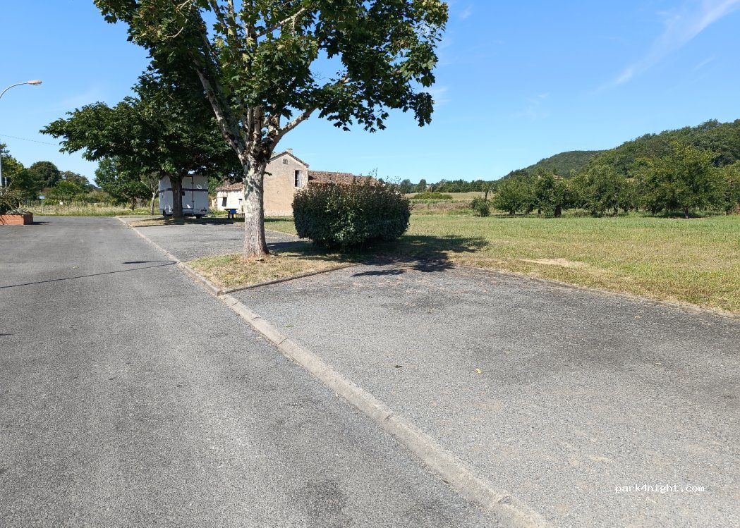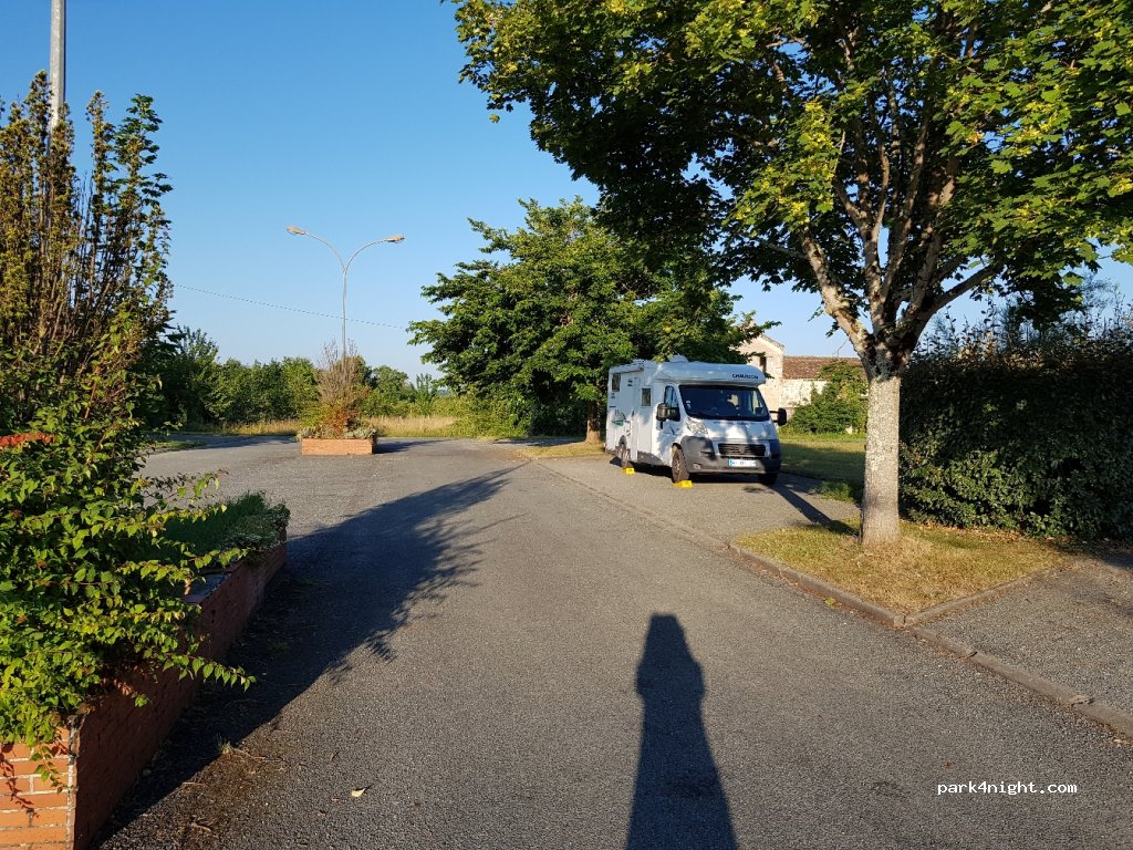Parking de la salle des fêtes. Possibilité de se garer en épi. Calme pour la nuit.