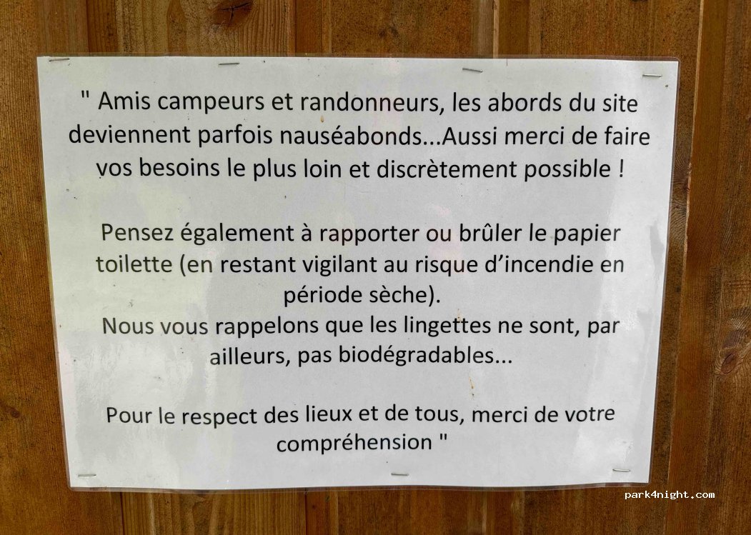Très joli coin sauvage et parfaitement calme la nuit. Un peu de monde les WE pour les départs de randonnées mais très sympa. Avec la cabane des "charbonniers" à proximité
