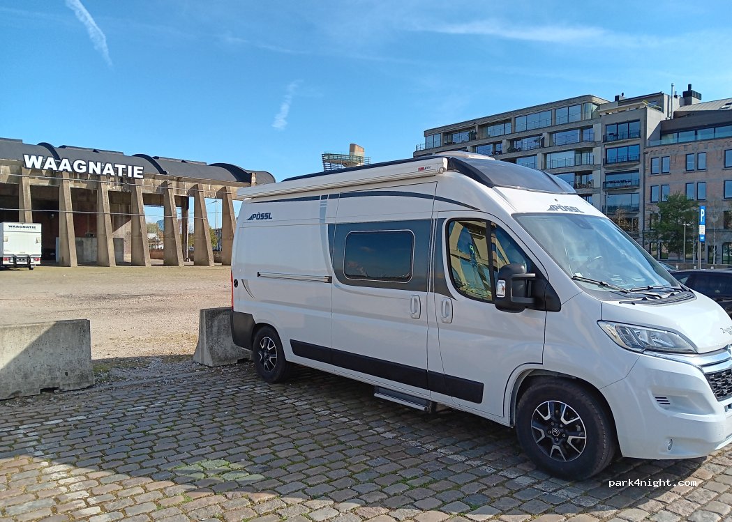 Parking at the Rheinkai in Antwerp, great price, 5 euros, and right on the canal ... Highly recommended, but noisy surroundings, street, clubs ..