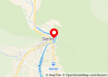 Sehr guter Parkplatz zum Übernachten und zentral in dem kleinen Ort Serres gelegen. Restaurants und unbedingt den mittelalterlichen Weg zwischen den Häusern hoch zur kleinen Kapelle laufen!
