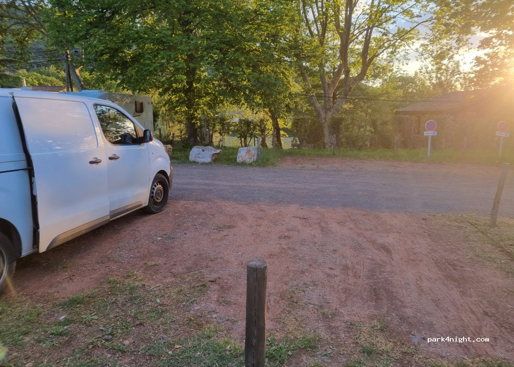 petit parking pour 2 CC sans hauteur limitée gratuit et ombragé emplacement bien délimité longs CC ne doivent pas passer limité à une nuit point déchet à proximité