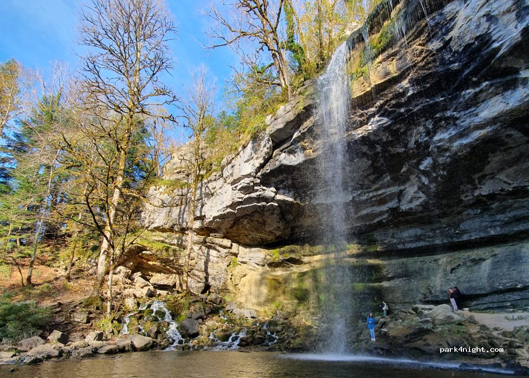 Super spot avec plus de 8 emplacements. 1ère chute d'eau à 800 m en contre-bas par large chemin praticable à tous et possibilité de se baigner par forte chaleur. Point d'eau et toilettes nettoyés chaque jour en haute saison. Petite épicerie-bar de l'autre côté de la route. Randonnée des cascades du Hérisson = environ 3 km (donc 6 km aller-retour), compter 3h de marche avec pauses.