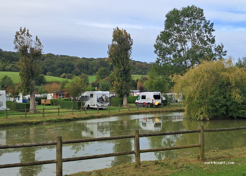 We like this campsite, stayed 2 nights. We were located a pitch by the fishing lake but parked in the bay next door. Reception was closed when I went to check this was OK so went in the morning and explained. She was OK with what we had done as it was out of season & they had plenty of pitches. The facilities are good & the showers hot powerful. Bus to Dieppe just outside campsite. Brilliant.