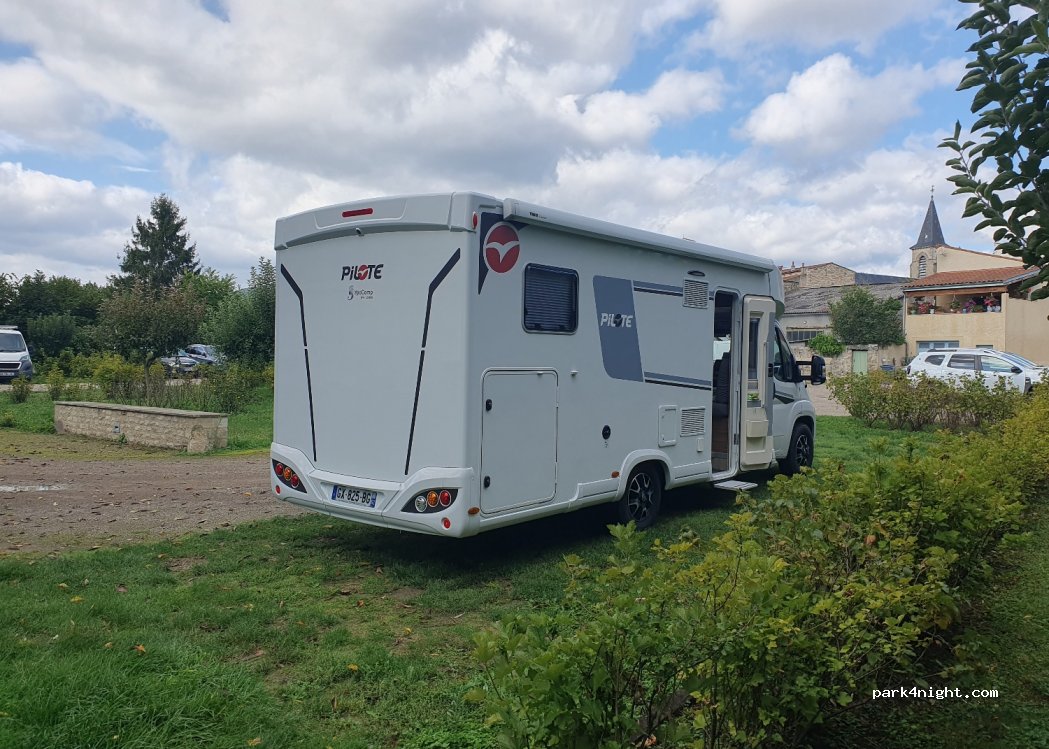 Heerlijke plek onder de bomen. Naast beekje. Zeer rustig dorpje.Geweldigw plek om te lunchen. Campers tot max 6.50 m. wij stonden op het gras. Is geen probleem.