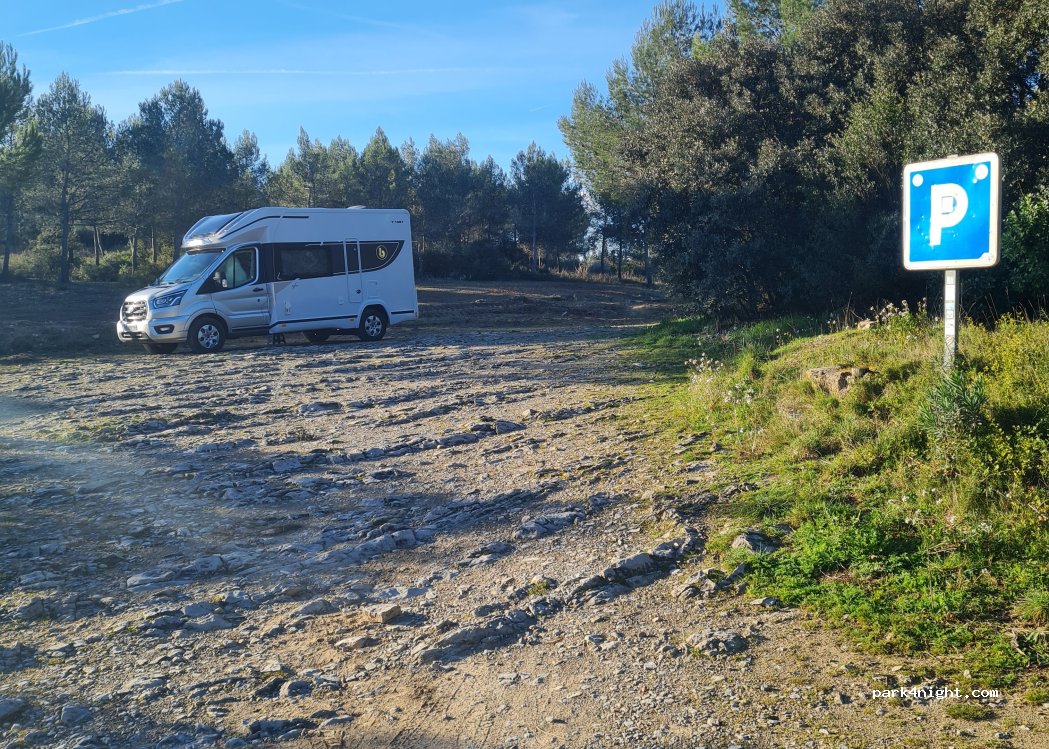 superbe endroit au milieu de la garrigue. nous y avons passé 3 nuits très calmes en camping car. bien laisser les lieux propres et surtout ne pas faire de feux. c'est un parking avec aucune interdiction de nuitée. Quel bonheur de trouver de tels endroits