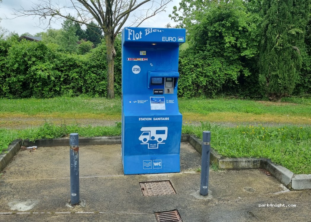 un endroit très agréable,propre,eau, électricité et vidange wc sur borne flot bleue nous avons payé 3€ pour l'eau pour 20mn de remplissage, une promenade vers et autour du lac géniale ,une aire de jeux pour enfants à côté.un grand merci à la municipalité de nous offrir un lieu si agréable proche des commerces ,le stationnement est gratuit, le sol est goudronné et les emplacements sont larges.