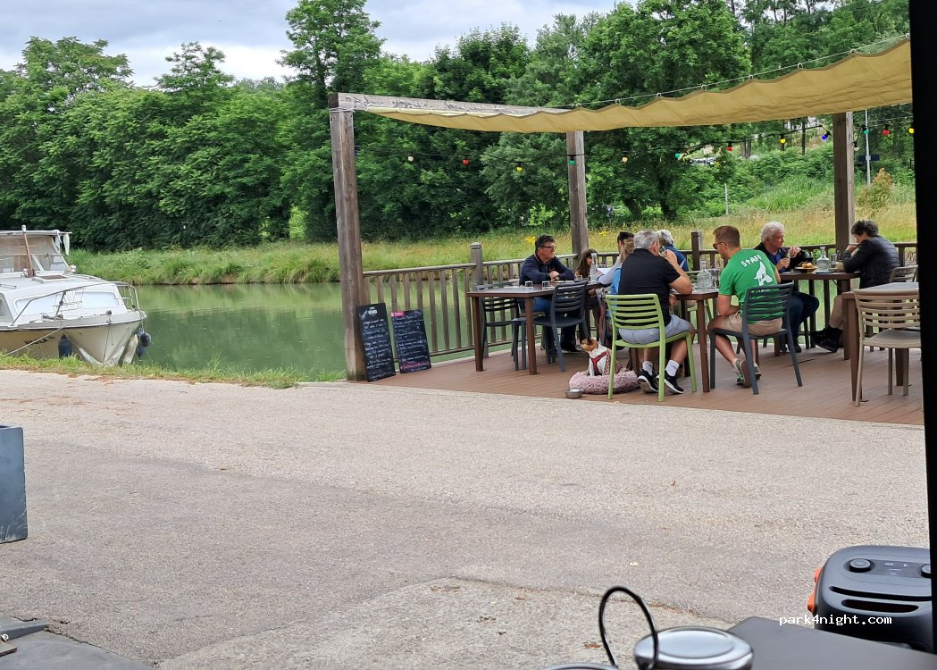 parking agréable au bord du canal sans service, commerces à proximité dont la boulangerie (très bon pain) merci à la municipalité dommage lors de notre étape la guinguette était fermée sinon nous aurions testé