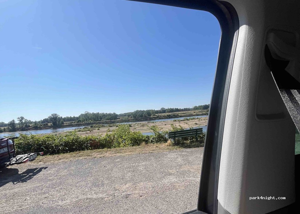 Wir haben hier mit 2 Autos eine Nacht geschlafen. Ein wunderschöner Platz und der Blick über die Loire ist beim Sonnenaufgang wirklich traumhaft. Wir hatten hier keine Probleme. Morgens sind nur ein paar Radfahrer und Spaziergänger unterwegs.