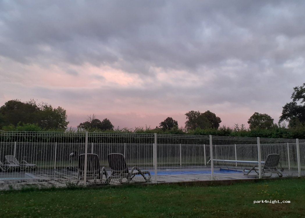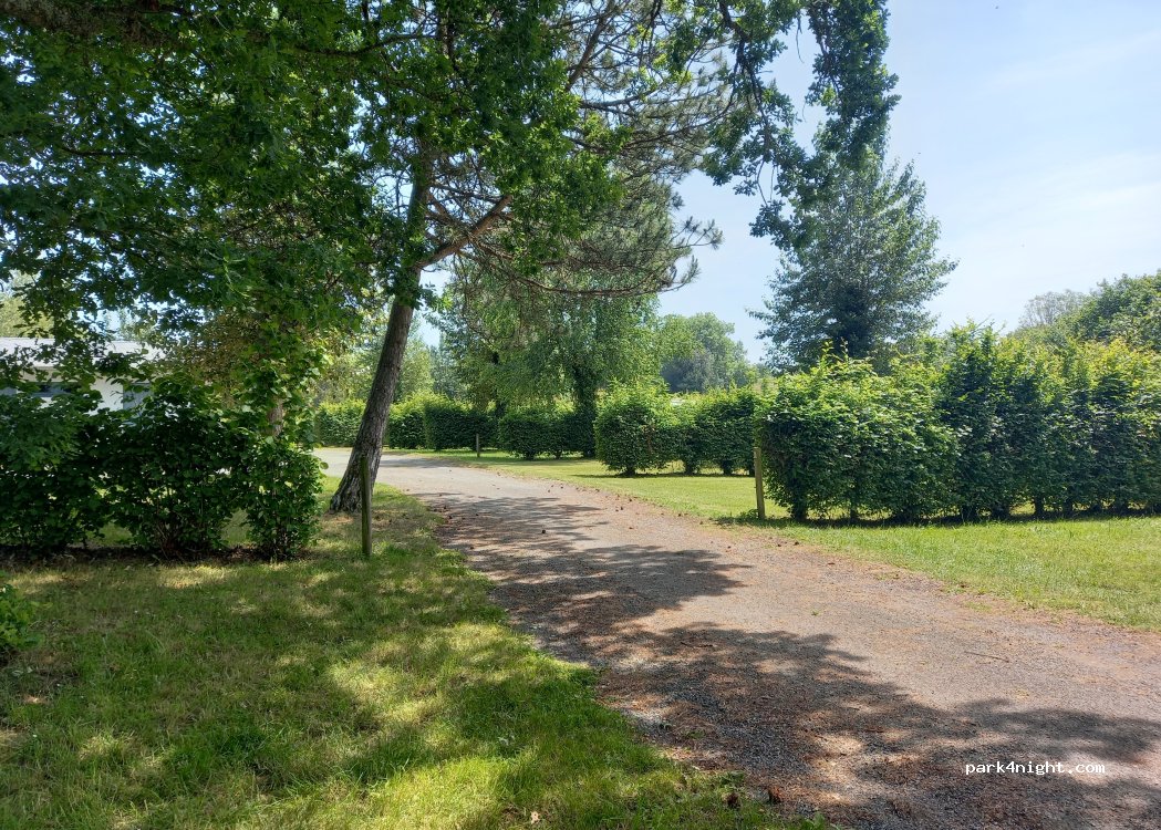 Charmant camping, emplacements séparés par des jolies haies, sol herbe rasée, et cela tient pas trop mal, car pluie quasi tous les jours et les 5 tonnes du camping-car ne se sont pas enfoncées, agréable étang à côté. Par contre, il peut arriver que l'espace de loisirs à l’entrée soit loué pour des événements, la c’était des médecins et infirmières de Clermont Ferrand. Et vu la sono, j'ai préféré fuir.