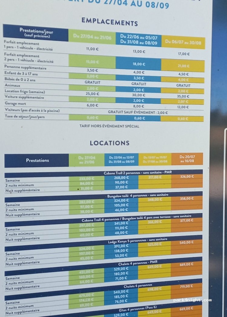 11 € -17€/ pitch + 1 person/day + electricity