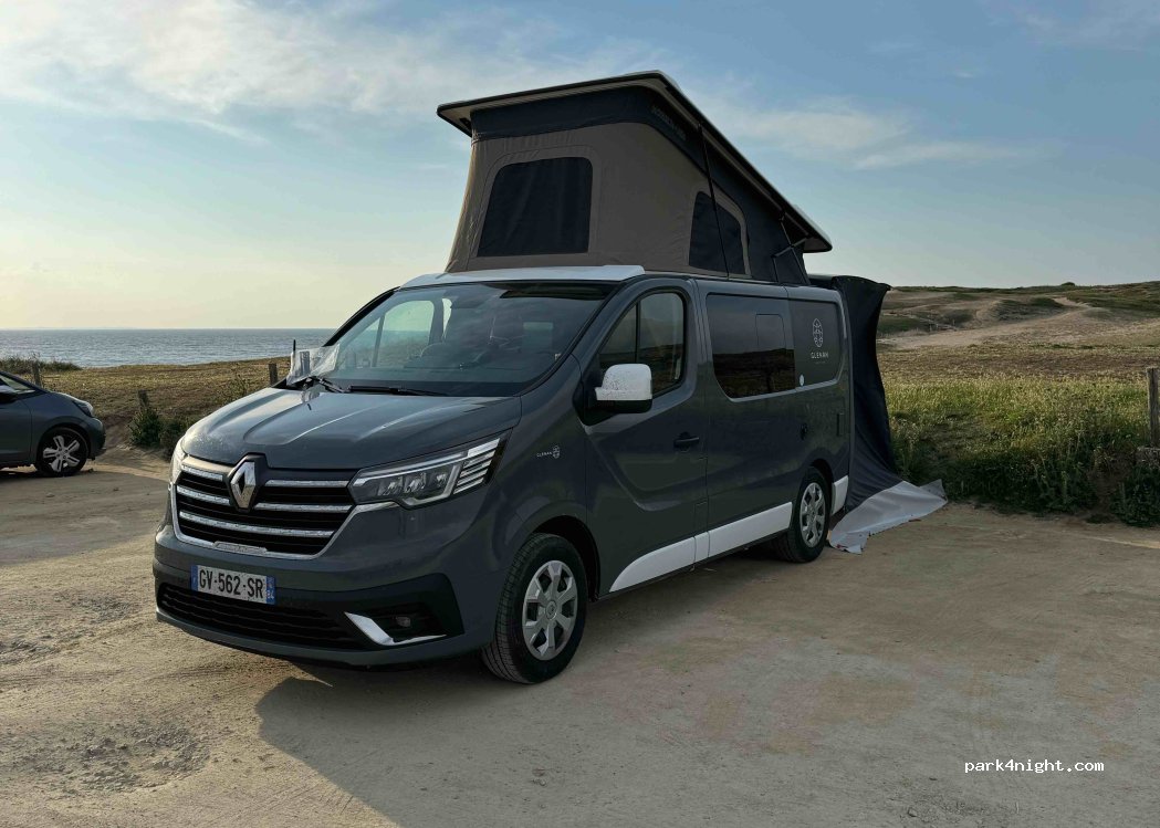 Superbe vue, endroit calme la nuit (après le départ des touristes en voiture venus pique niquer sur la plage). Pas de poubelle ou autre. Parking plat et grand ! Parfait pour une nuit ou plus avec les balades le long de la côte sauvage.