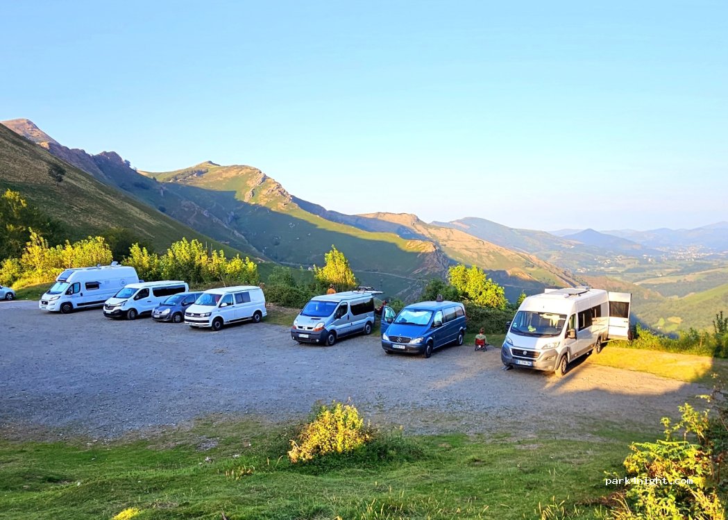 Un spot super avec une vue magnifique à la frontière France/Espagne. Très calme la nuit bien que le parking soit complet.