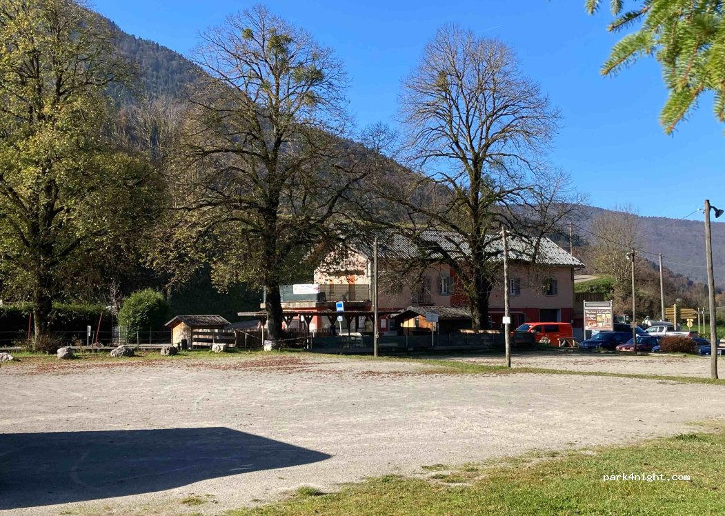 Parking au calme à coté du Chéran. bloc sanitaire à proximité mais parfois fermé tres bon point de depart pour rando montagne (Trélot, Dent d Arclusaz..)