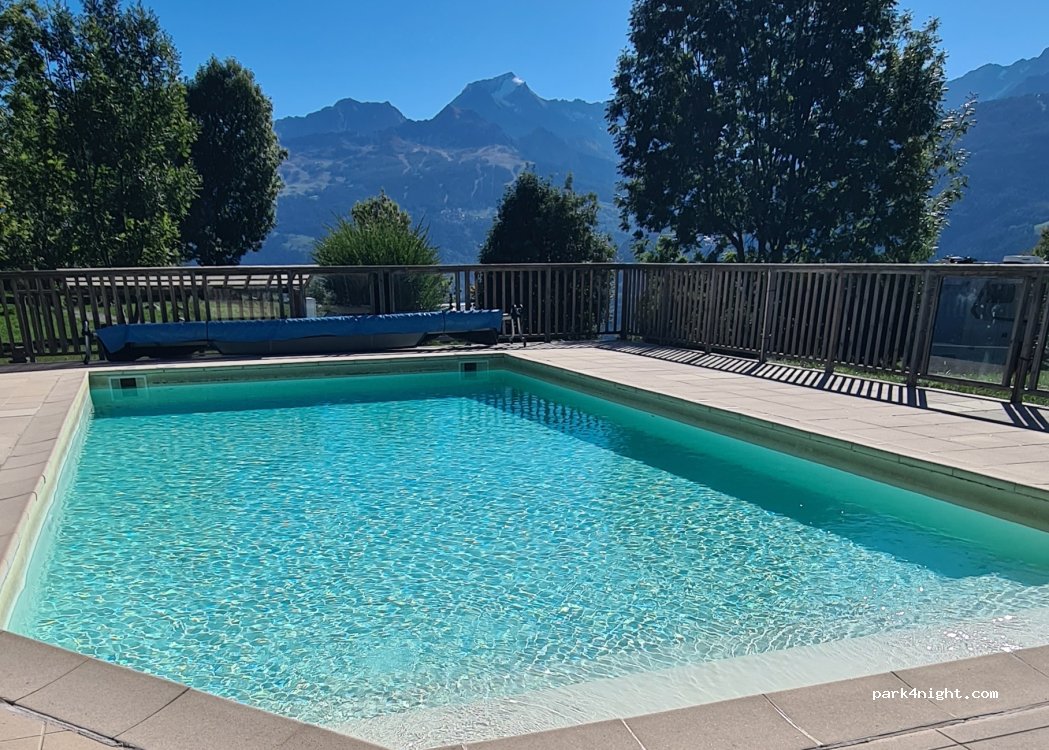 Très chouette camping familial : belle piscine dans montagnes, pain/ viennoiseries ; lessive: 6 euros;41,64 euros/nuit pour CC 2 adultes, 2 enfants; bcp Hollandais mais ok la nuit; départ de randonnées à proximité ; attention : cash only pour pain, snack, glaces etc mais éventuellement virement possible pour payer les nuits.Sanitaires ok. 45 min à pied de Aimé (1h30 pour remonter).