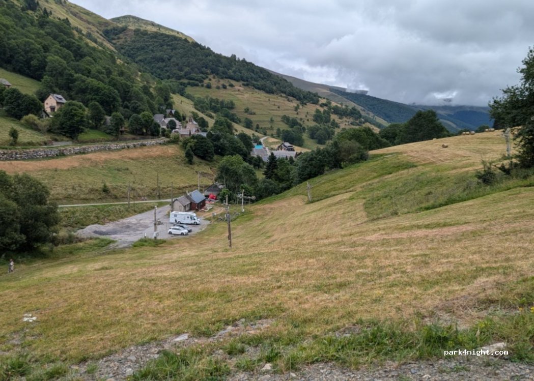 Petit parking plat de la station de ski (3 téléskis). Nuit calme. Départ randonnées. Idéal pour aller voir le tour de France au Port de Balès quand la route est fermée.