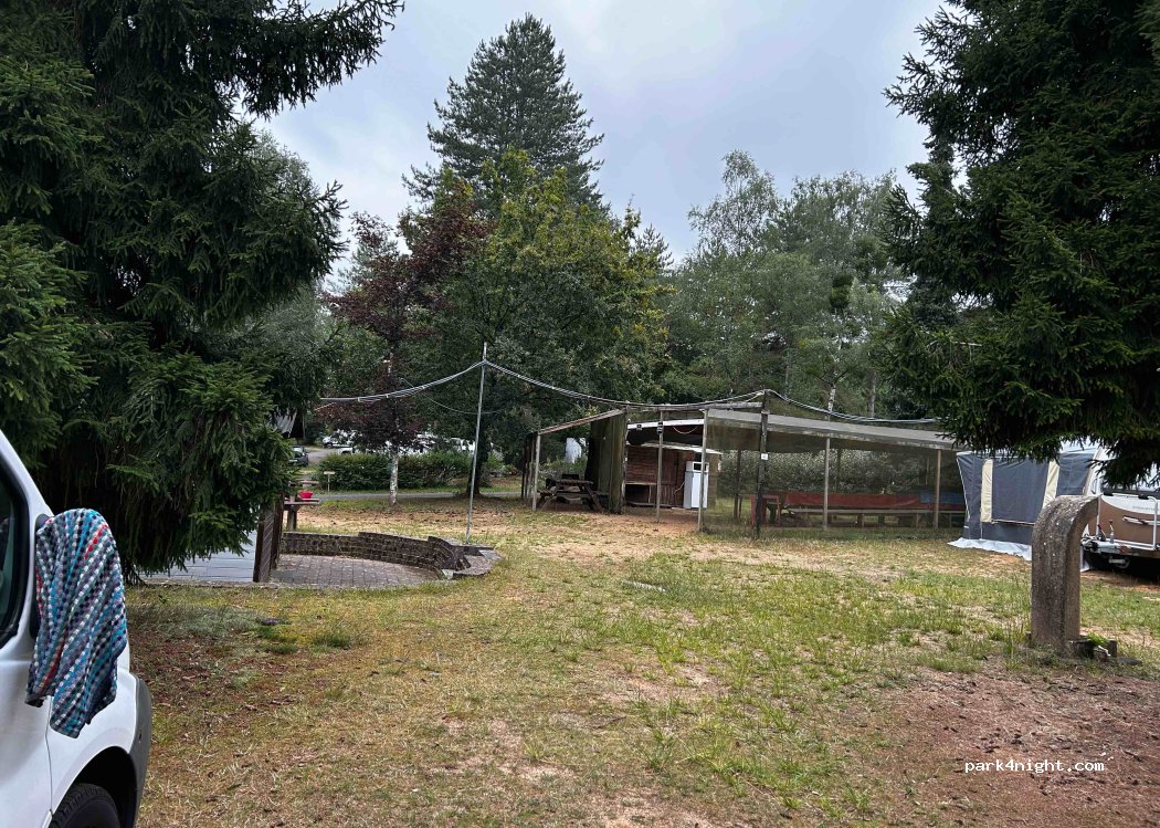 Super quirky little site within a wooded area. The Manager is super helpful, pitches are of a good size and the toilets and showers although old, are clean and tidy with plenty of hot water. Electricity included in the price of €10 for 2 adults, motorhome and dog. Would have no problem in returning. Thanks to the town for providing this site.