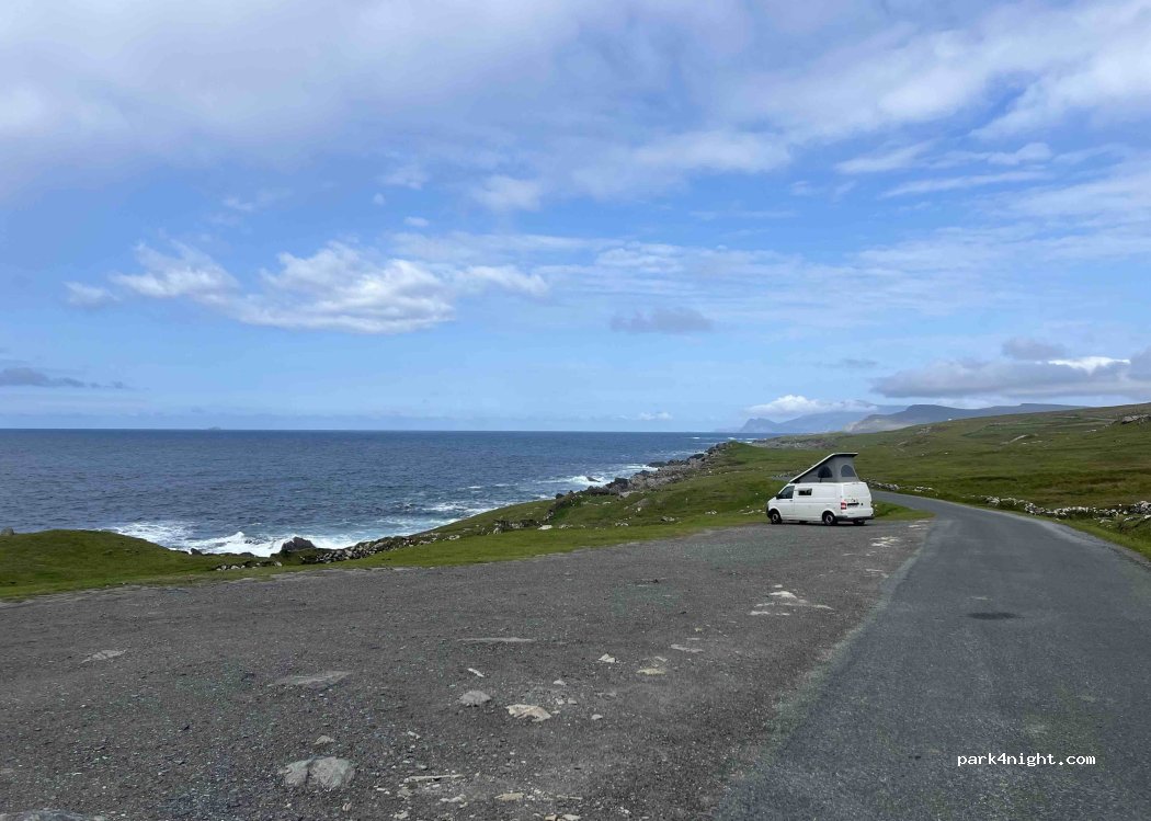 Emplacement de rêve avec une sensation d être seuls au monde (avec un peu de chance!) : peu de passage, à peu près plat, au milieu des moutons et avec une vue à couper le souffle. Se garer au plus haut de l allée gravillonnée, au plus proche des gros cailloux et ensuite comme le disent les irlandais : enjoy!